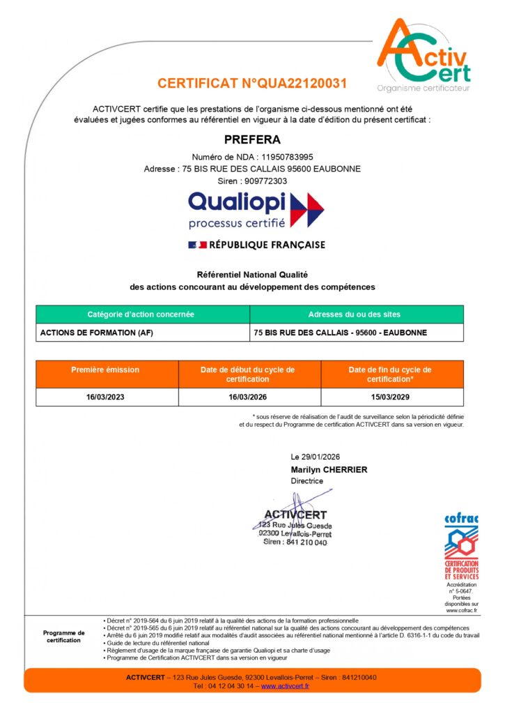 Mail : contact@prefera.fr I Téléphone : + 33 (0)6 27 46 10 02